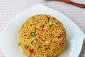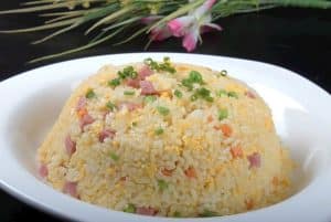 Gebratener reis mit eier ,gemüse und pouletfleisch