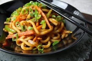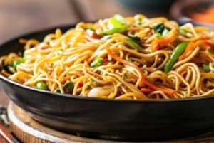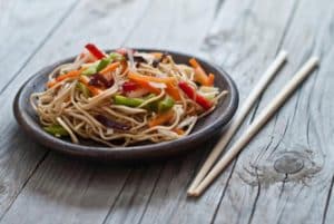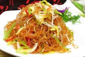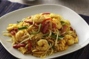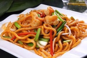 Gebraten Mit eier ,crevetten, surimi, zucchini, karotte, sojasprossen